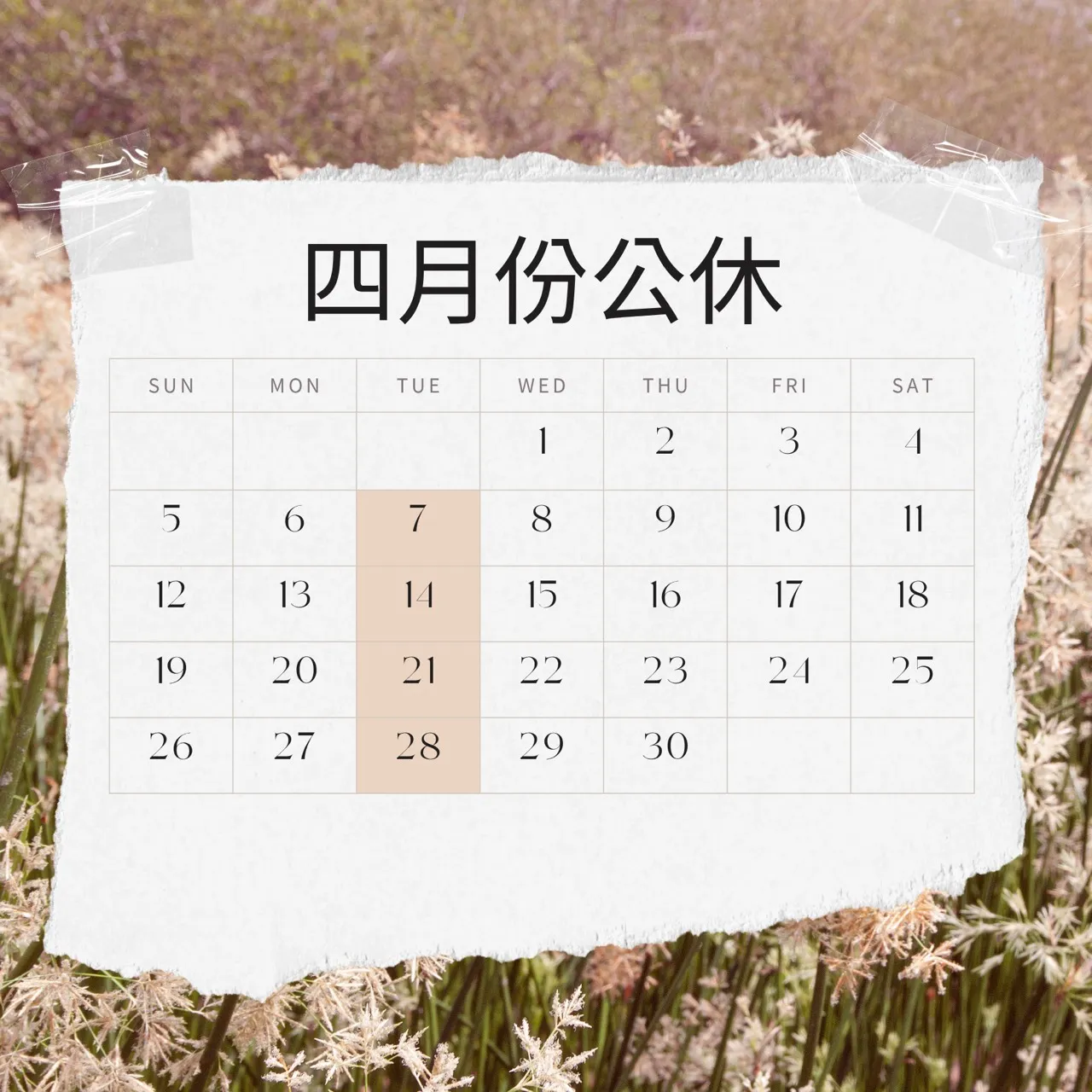 四月份公休